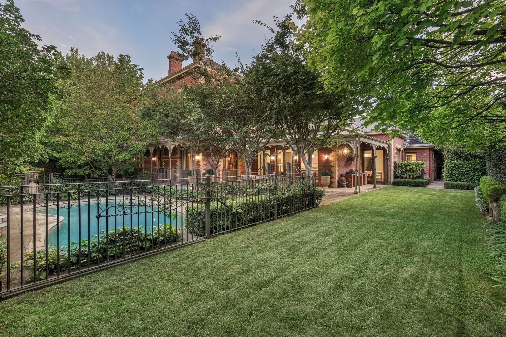 Set among a streetscape adored for its converging foliage and period masterpieces, this extraordinary residence enjoys a captivating stance, with manicured gardens, a distant setback, and elaborate ornamentation heightening the allure of an unforgettable façade. With timeless features spanning marble and timber-encased fireplaces, detailed stained glass, an exquisite archway, and soaring, intricate ceilings, a broad entrance hall affords an instant impression, parting considerable lounge and office spaces with vivid floral outlooks. With bay windows to a relaxing front lounge and fitted workstations to a quiet study, adjacent music and dining rooms ensure further living flexibility, with extensive glass across an open northern side attracting swathes of all-day sunlight.