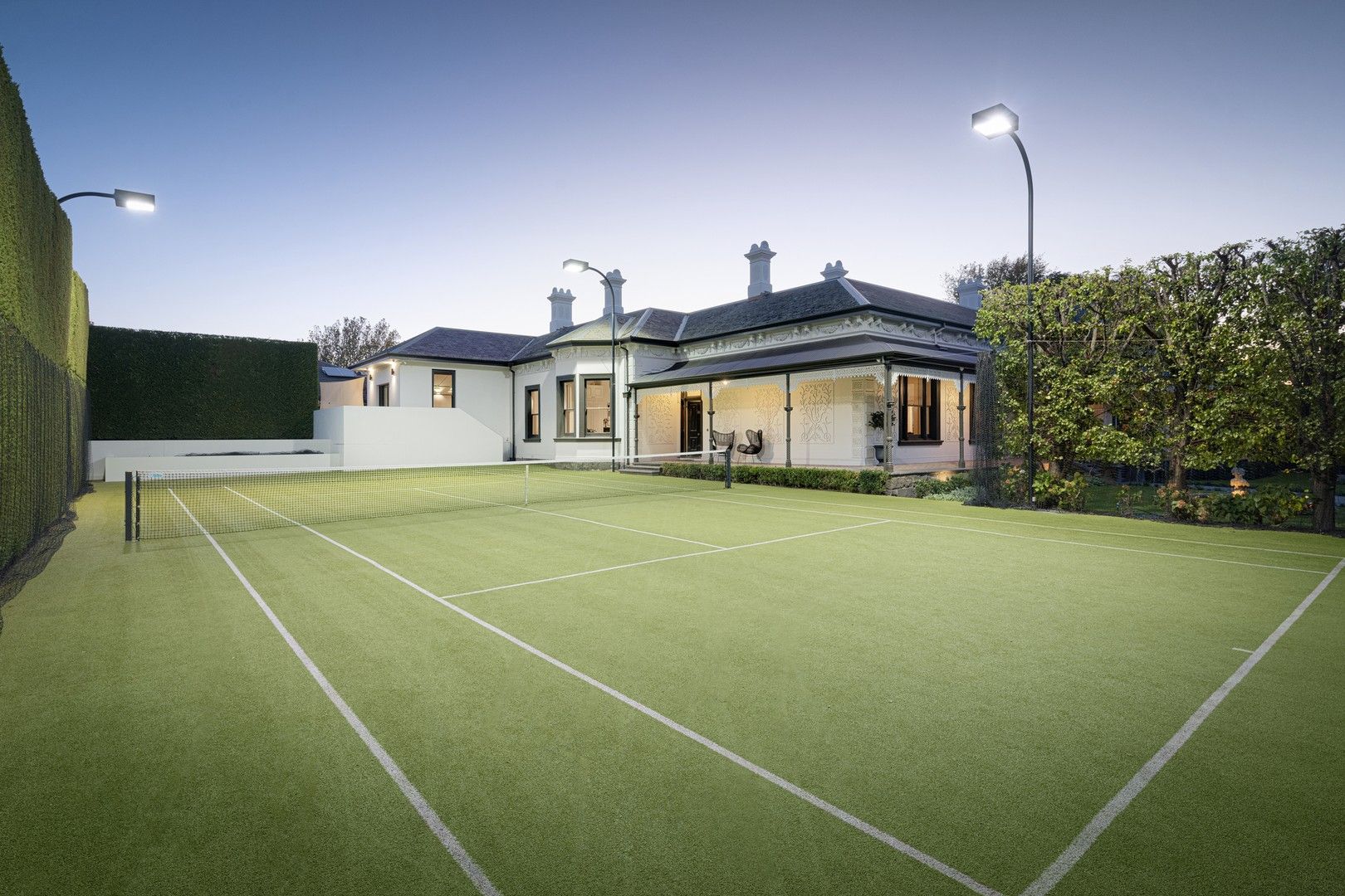A stunning sense of space is fostered by the grand proportion and ornate detail of a broad entrance hall, introducing formal living and dining zones with marble fireplaces, calming garden outlooks, and brilliant coverage of northern sunlight. At plan’s rear, a sun-soaked lounge joins a billiard room with its own balcony in offering welcomed living flexibility, while a rain-sensing Vergola alfresco proves perfect for a late-night drink or morning coffee. A completely private backyard centres around an oversized, solar and gas-heated pool and spa, while on the grounds’ southeast side, a floodlit, competition-standard tennis court is just as ideal for kids to burn off their energy as it is a base for marquee celebrations.