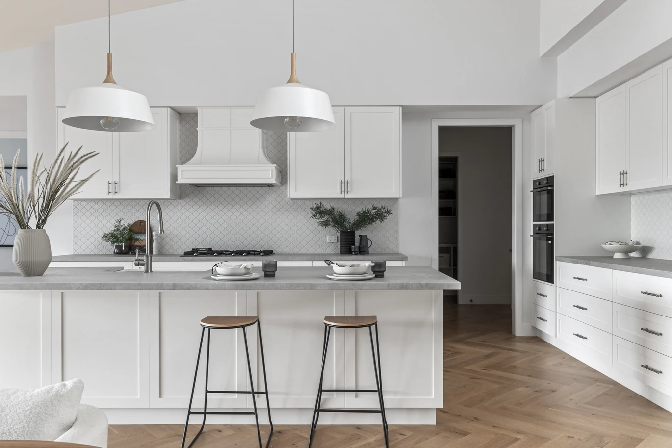 Awash with natural light, a magnificent main section sees sparse black accents tastefully contrast pale tones, with open living and dining settings enjoying relaxing outlooks across the property’s vast grounds. Enriching entertaining credentials, an enthusiast’s kitchen boasts stunning, concrete-look stone benches alongside abundant 2-Pac cabinetry, a double walk-in pantry, wide island with seating for several, and suite of first-class Asko appliances. Introduced by a decked alfresco, a considerable yard stretches to a distant rear boundary, with an expansive, powered shed providing a perfect tradesperson’s base or storage for recreational vehicles.